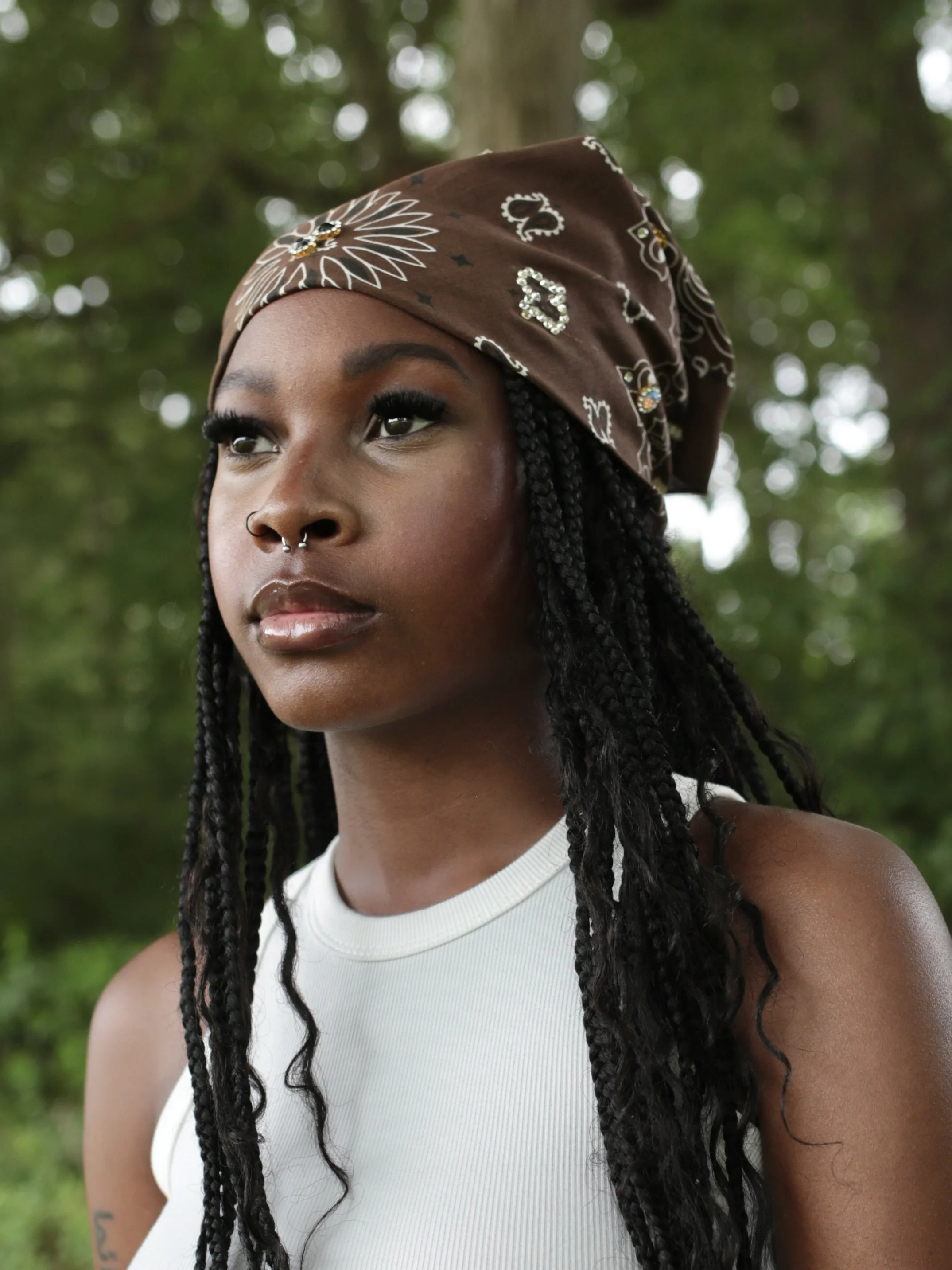 Shop › "Austin" Bandana Image 1 of 4 Image 2 of 4 Image 3 of 4 Image 4 of 4 "Austin" Bandana Sale Price: $100.00 Original Price: $125.00 100% Cotton22” x 22”Over 800 hand-placed rhinestonesMade in the USA Quantity: Add To Cart Added! 100% Cotton22” x 22”Over 800 hand-placed rhinestonesMade in the USA